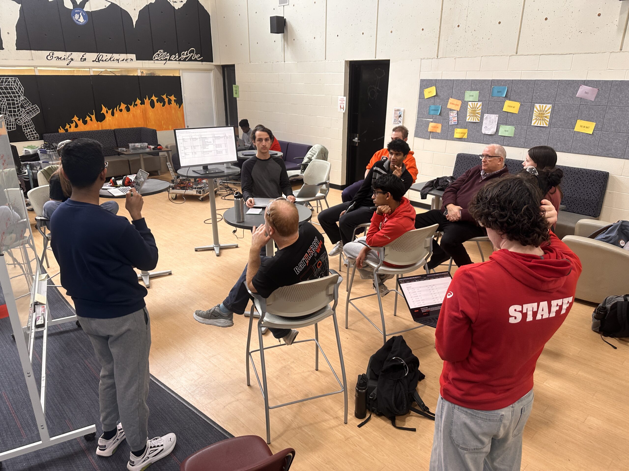 We wrapped up with a full‑team strategy discussion, aligning on what goals and mechanisms seem most viable for this year’s robot. It was a strong, collaborative start.